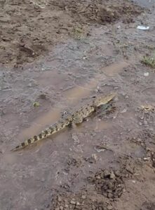येथील एसटी स्टँडसमोर इमारतीसाठी खोदलेल्या खड्यातील पाण्यात मगरीच्या पिलाचे दर्शन झाले. सायंकाळपर्यंत शोध घेऊनही पिलू हाती लागले नाही. एसटी स्टँडसमोर मोकळी जागा आहे. या जागेत इमारत बांधकामासाठी खड्डे खोदले आहेत. हे खड्डे पावसाच्या पाण्याने भरले आहेत. त्यातील एका खड्ड्याच्या काठावर तीन फूट लांबीचे मगरीचे पिलू उन्हात पहुडल्याचे युवकाच्या निदर्शनास आले. नगरपालिका कर्मचाऱ्यांनी येऊन पाहणी केली पण पिलू दिसून आले नाही. सायंकाळपर्यंत या पिलाचा शोध सुरू होता.