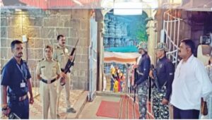 लाखो भाविकांचे श्रद्धास्थान असलेल्या आणि पर्यटकांच्या गर्दीने गजबजलेल्या करवीर निवासिनी श्री अंबाबाई मंदिराचे सुरक्षाकवच पश्चिम महाराष्ट्र देवस्थान व्यवस्थापनाने कडक केले आहे. सध्या देशात सुरू असलेली युद्धजन्य परिस्थिती व कोल्हापुरातील पर्यटन हंगामात होणार्या गर्दीच्या पार्श्वभूमीवर मंदिरातील सुरक्षेबाबत दक्षता घेतली जात आहे. मंदिरातील प्रवेशद्वार, बॅग काऊंटर, बॅग तपासणी कक्ष, सीसीटीव्ही कक्ष येथे सुरक्षा यंत्रणा अधिक सतर्क करण्यात आली आहे.