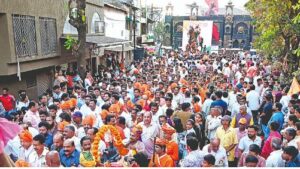 ‘जय भवानी, जय शिवाजी’ हा अखंड जयघोष… ढोल-ताशांचा गजर… नेत्रदीपक आतषबाजी… अशा जल्लोषी वातावरणात श्री शिवाजी तरुण मंडळाकडून सामाजिक संदेश देत छत्रपती शिवरायांची जयंती उत्साहात साजरी करण्यात आली. अर्धा शिवाजी पुतळा येथे पालकमंत्री प्रकाश आबिटकर, खा. शाहू महाराज यांच्या हस्ते या मिरवणुकीचे उद्घाटन करण्यात आले.