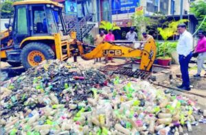 या नाल्यातील प्लास्टिक पाण्याच्या बाटल्या व कचरा साचला होता. त्यामुळे पाणी रस्त्यावरून वाहत होते. सकाळी महापालिकेच्या आरोग्य कर्मचाऱ्यांच्या व जेसीबीच्या सहाय्याने हा चॅनेल साफ करून प्लास्टिक पाण्याच्या बाटल्या व गाळ काढण्यात आल्या. यामध्ये चार टन प्लास्टिक बाटल्या, गाळ व इतर कचरा काढण्यात आल्या.