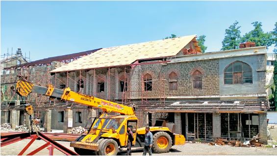 मधल्या काळात हे काम संथगतीने सुरू होते. आता पुन्हा कामाला गती आली आहे. छतावर पट्टा मारुन फळ्या मारण्यात आल्या आहेत. त्यानंतर वॉटरप्रूफिंग केले जाणार आहे. त्यानंतर कौले बसविण्यात येतील. कामाची मुदत संपल्याने ठेकेदार कंपनीला मुदतवाढ देण्यात आली आहे.